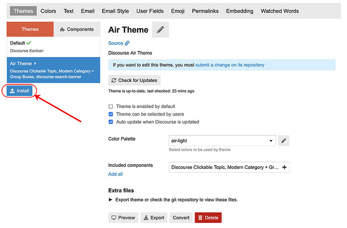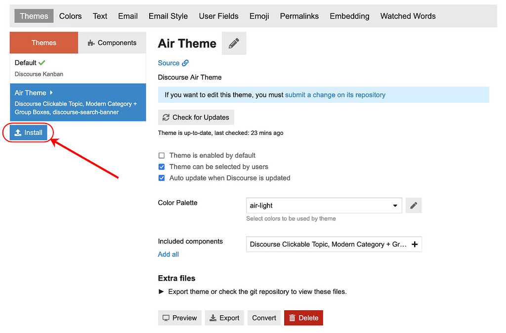 If everything worked correctly, you should now be able to navigate to My Themes on the https://discourse.theme-creator.io/ and see your new theme in the themes list on the left.