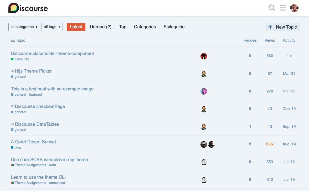 This guide was meant to scratch the surface of how you can customize your own theme for Discourse. I hope that you now have more insight into how to target areas of the app for your own customizations.