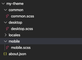 It is worth noting that the styles we add to these files will render in their respective use case. Styles in common.scss will be applied to desktop + mobile, while styles in desktop.scss will only be applied to desktop browsing, and those in mobile.scss will only apply to mobile views.