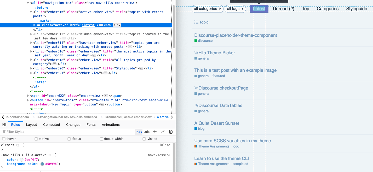 I can not stress how important using your browser’s inspector tools are when creating Discourse Themes. They are your best friend to ride with you on this journey.