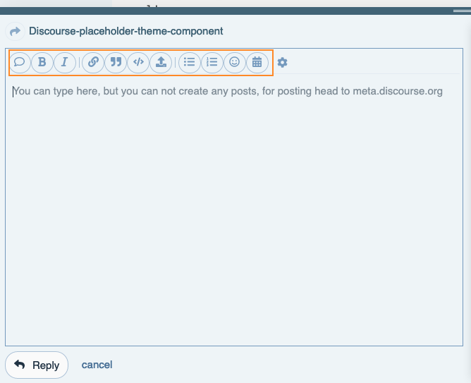 Go ahead and click through to a Topic on your site preview, then hit the reply button on a topic reply, or from the reply button at the bottom of the topic stream. You will see that our button styling has affected some things we may not have had in mind.