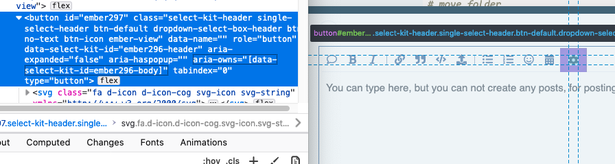Inspecting this in the browser, I can see that this button has a class of .select-kit-header because upon clicking this gear, more options will show up.